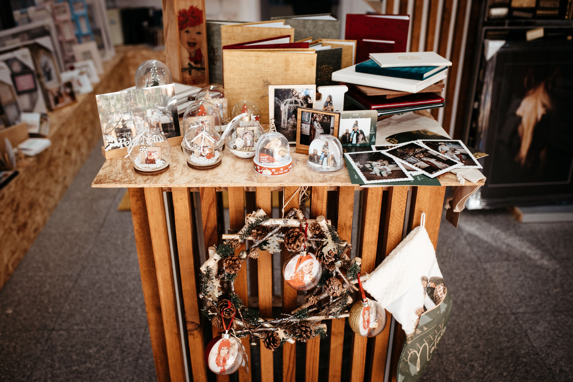 Temos á sua disposição vários artigos para que possa oferecer uma prenda requintada, desde molduras em madeira rusticas, globos de agua, imans entre outros. Artigos com fotografia